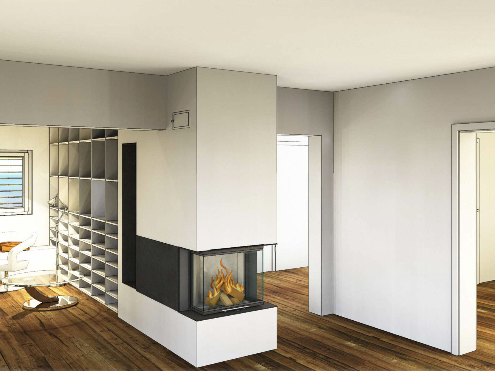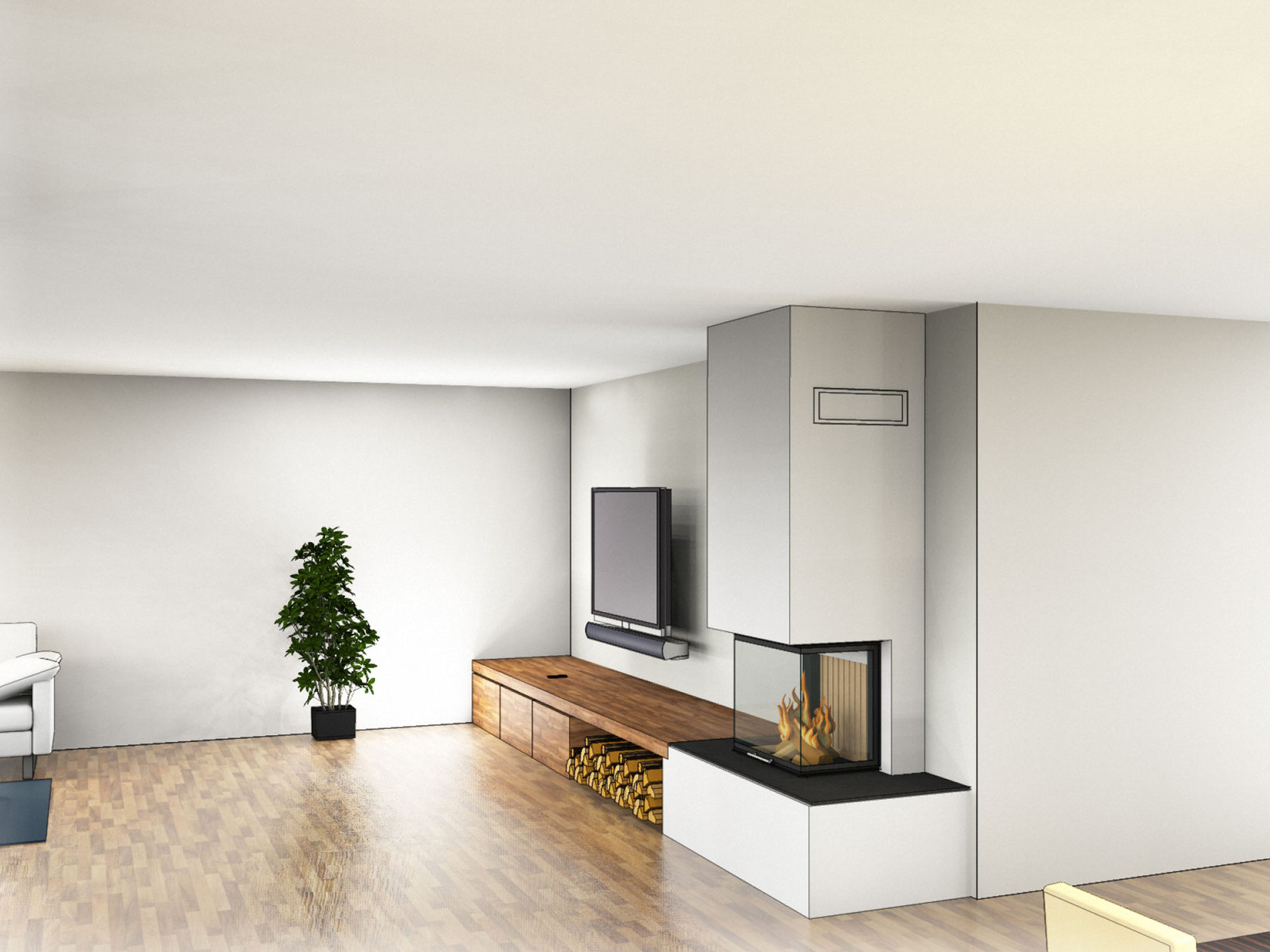 Основной задачей было в кратчайшие сроки подобрать качественную каминную топку, согласовать технические чертежи и смонтировать камин. По дизайн-проекту заказчика была подготовлена техническая визуализация камина.