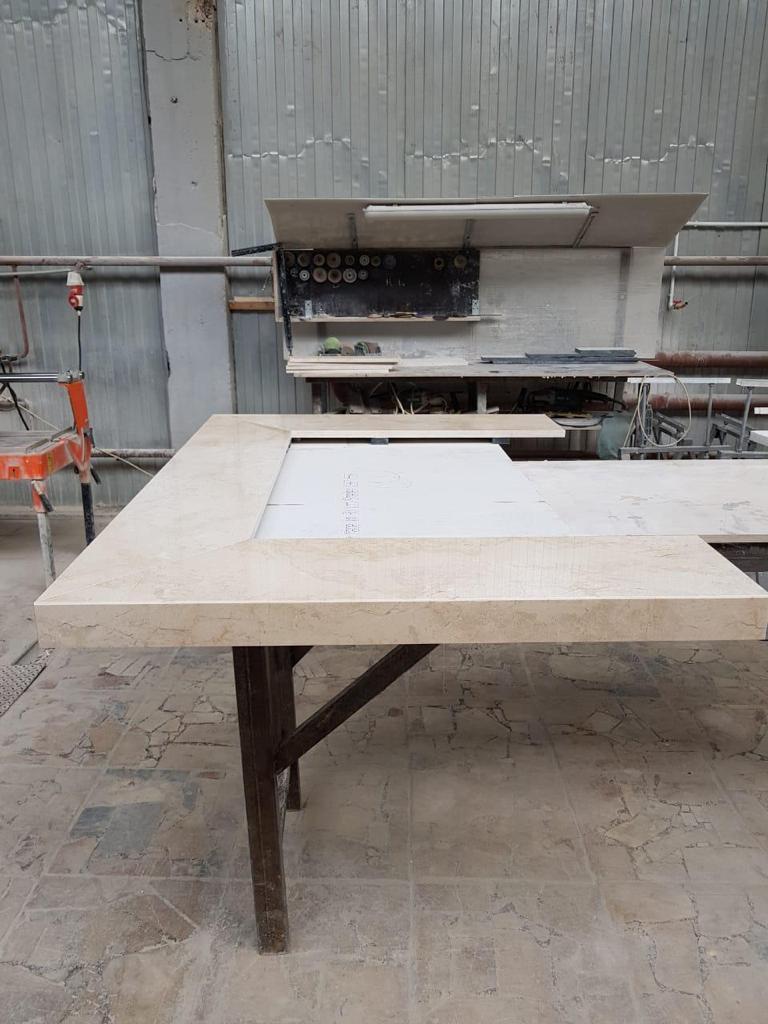 По эскизным наброскам заказчика с учетом всех пожеланий был подготовлен дизайн-проект и технические чертежи камина. В качестве материала для облицовки камина был выбран мрамор сортов Крема Марфил и Крем Брюле.